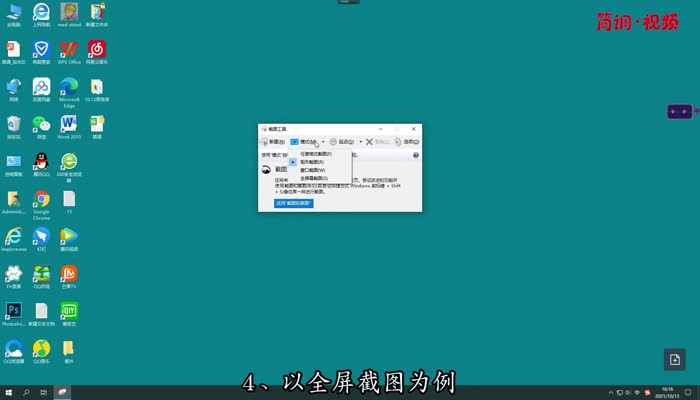 3.打开截图工具窗口后,点击“模式”选项,可以选择需要的截图方式进行截图;
