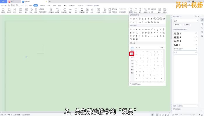 3.点击菜单栏中的“标点”,找到_符号,点击插入到word中;