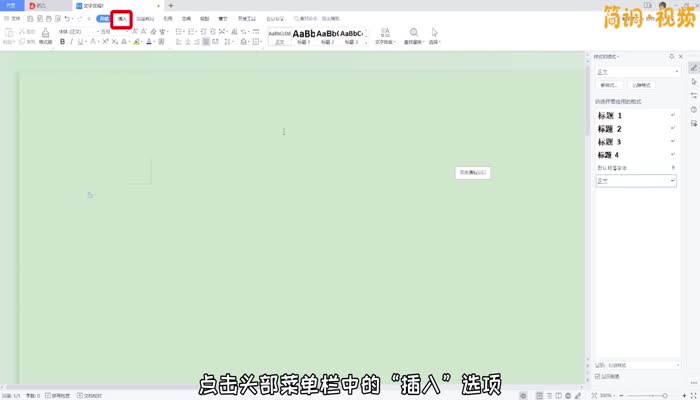 1.打开word文档,点击头部菜单栏中的“插入”选项;
