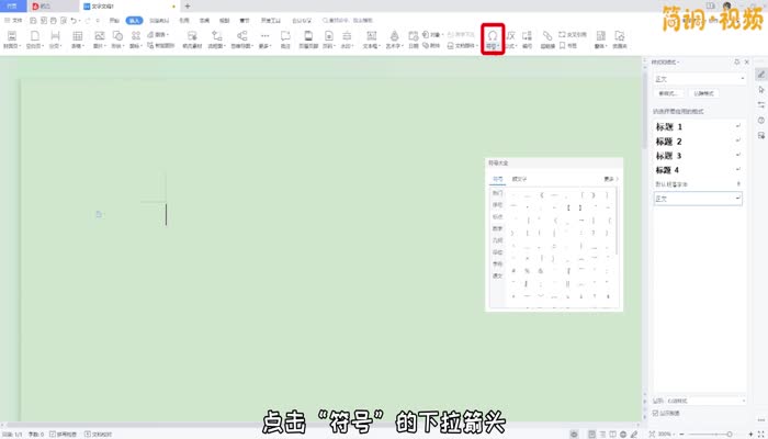 2.在插入界面,点击“符号”下拉箭头,可以看到所有符号;