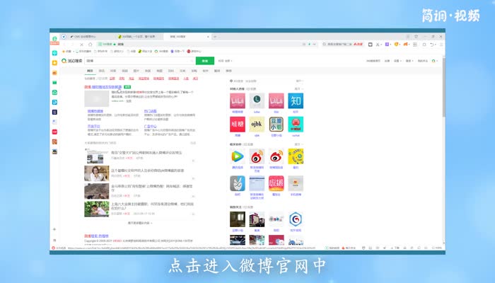 2.在搜索结果中,点击进入官网、微博,登录你的微博;