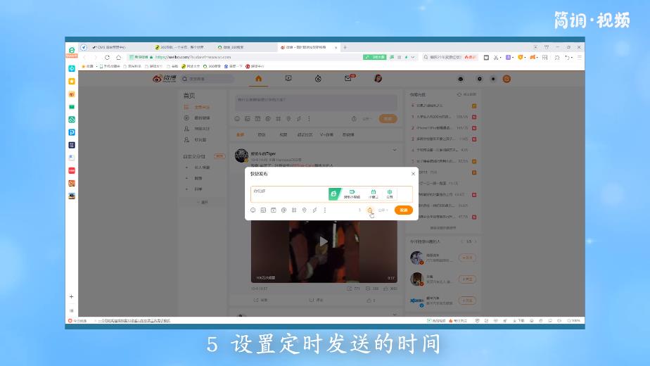 只有网页上的微博可以定时发送,手机上的微博没有定时发送的功能。在网络微博中定时发送微博的具体操作步骤如下: