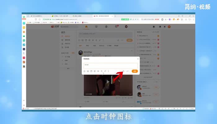 4.在编辑界面,输入微博的文案,或者添加图片,点击时钟图标;