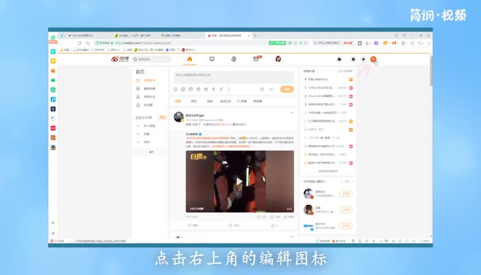 3.在微博界面,点击右上角的编辑图标,进入编辑界面;