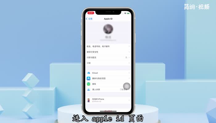 2.进入手机设置页面后,点击上方的账号区,进入Apple ID页面;