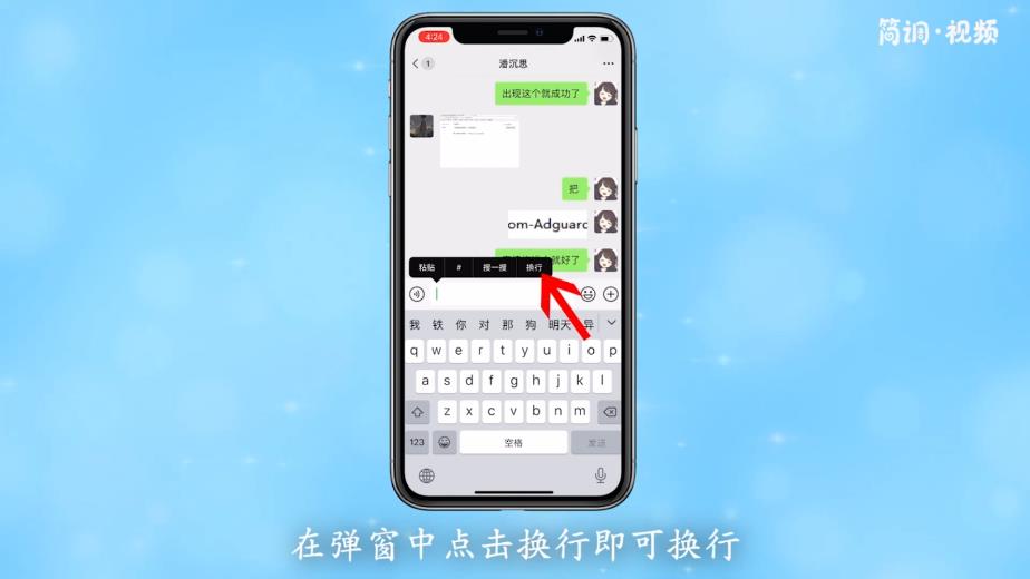 在备忘录中,如果iphone输入法想要输入新的一行,直接点击输入法中的换行键即可。但在微信qq等软件中,长按光标可以选择换行。以微信为例。具体操作步骤如下: