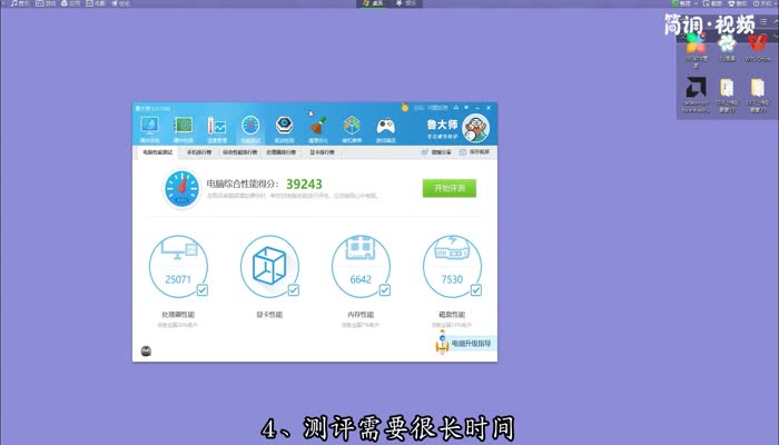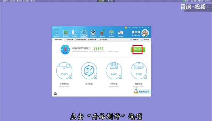 鲁大师的跑分就是性能测试功能。你可以进行性能测试,然后检查你的计算机综合得分。具体操作步骤如下: