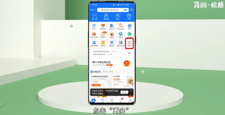 1.打开手机桌面的支付宝,进入支付宝后,点击“更多”进入应用中心;