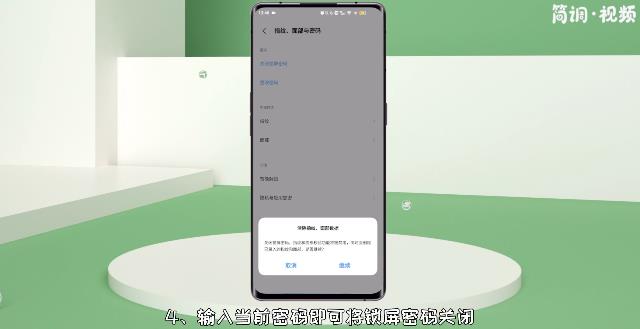4.输入当前密码以关闭锁屏密码。