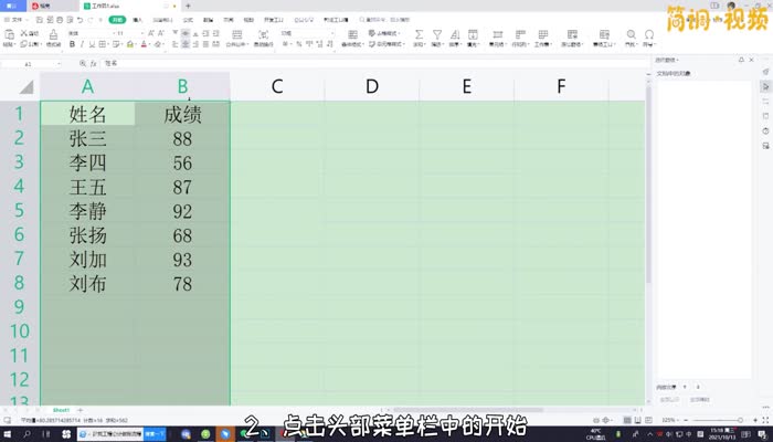 2.点击头部菜单栏中的开始,然后点击“排序”下拉箭头;
