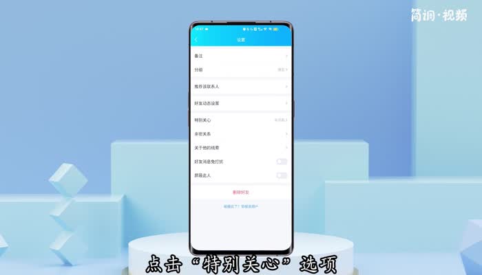 为QQ手机设置特别关怀,可以在好友设置页面点击“特别关怀”进行设置。具体操作步骤如下: