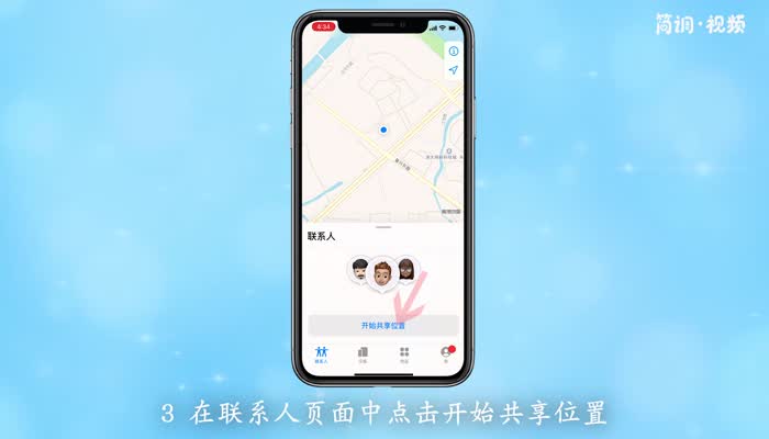 3.单击联系人页面中的“开始共享位置”;
