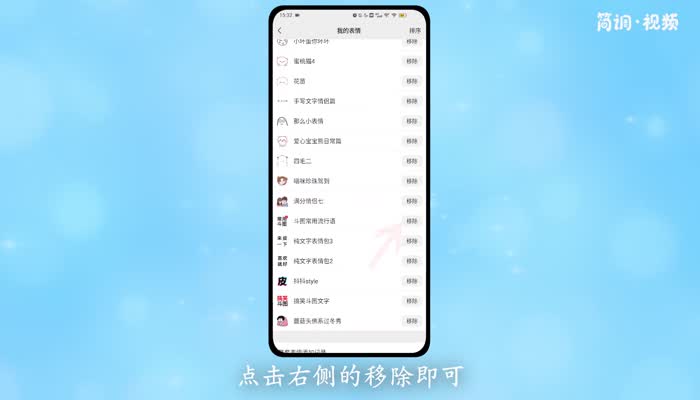 3.进入我的表情符号页面后,选择要移除的表情符号,点击右侧的“移除”;