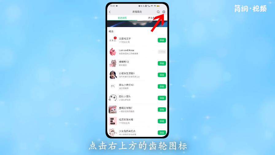 2.进入个人页面后,点击“表情符号”选项。进入表情商店后,点击右上方的齿轮图标;