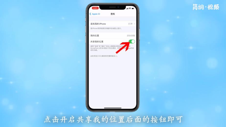 可以在appleID页面上的“查找我的iphone”设置中打开iPhone的定位服务。开启“分享我的位置”功能的具体操作步骤如下: