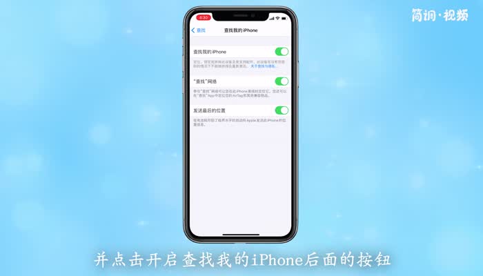 4.点击进入查找我的iPhone页面,点击查找我的iPhone背面的按钮;