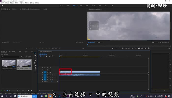 3.点击选中V中的视频,按键盘上的del键删除,这样就只保留音频了;