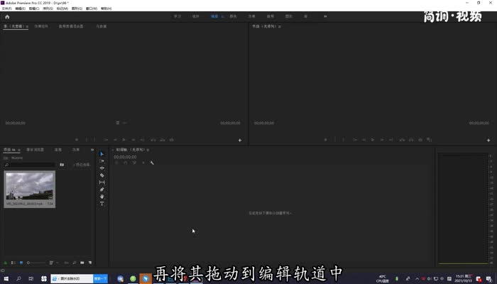 1.打开pr,导入视频,然后拖拽到剪辑轨道;