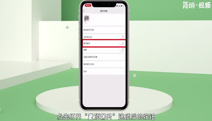 4.如果要取消置顶,只需重新进入聊天详情页面,关闭“置顶聊天”选项后的按钮即可。
