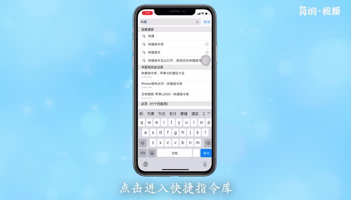1.打开手机进入safari浏览器,在搜索框中输入快捷命令库,点击进入快捷命令库;