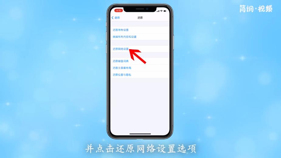 4.在恢复页面中找到并单击恢复网络设置的选项。