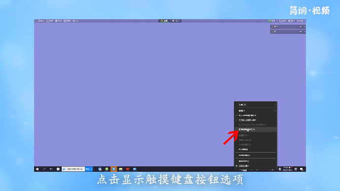 2.右击后,在弹出的列表中,点击“显示触摸键盘按钮”选项;