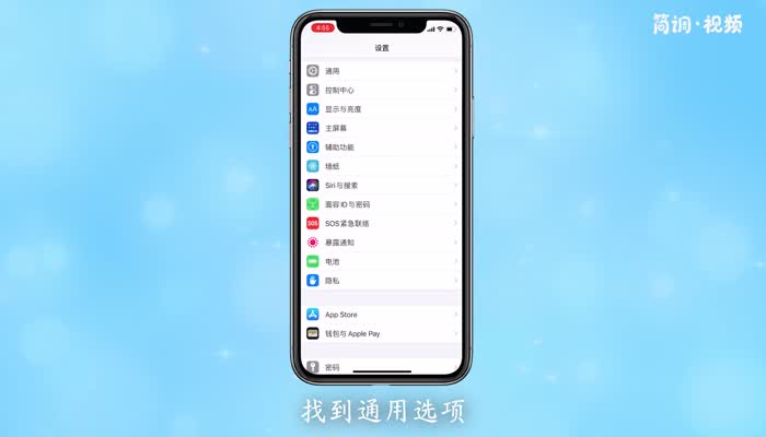 2.进入设置页面后,向下滑动手机屏幕,找到通用选项点击进入通用设置页面;