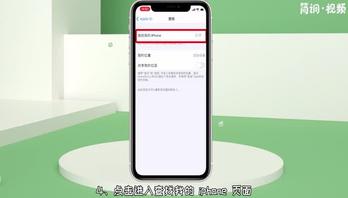 4.点击进入查找我的iPhone页面,点击查找我的iPhone背面的按钮;