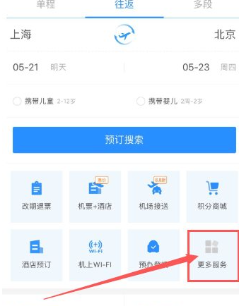 2.进入东航应用首页,在首页界面选择“附加服务”。