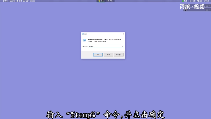 2.在弹出的运行窗口中输入“%TEMP%”命令,点击确定;