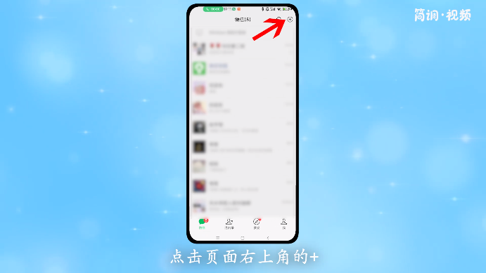 1.打开微信,点击页面右上角的“”,然后点击“收付款”选项;
