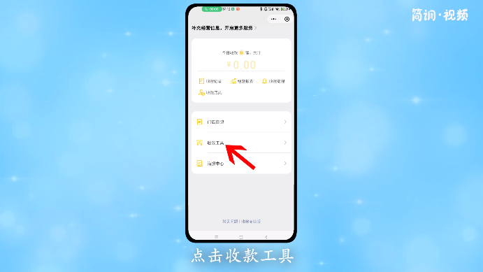 2.在支付界面,点击“二维码收款”,然后点击收款台账;