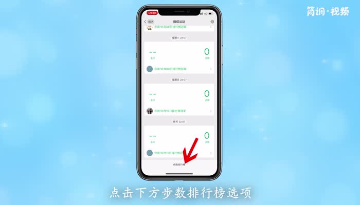 3.页面跳转后,点击下方“步数排名”选项,进入微信运动步数页面;