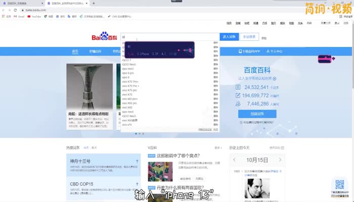 iPhone 13屏幕采用6.1英寸有机发光二极管屏幕;高约146.7mm,宽约71.5mm,厚约7.65mm,重约173g。要查看iphone 13的具体配置参数,可以在百度百科查看。具体操作步骤如下:
