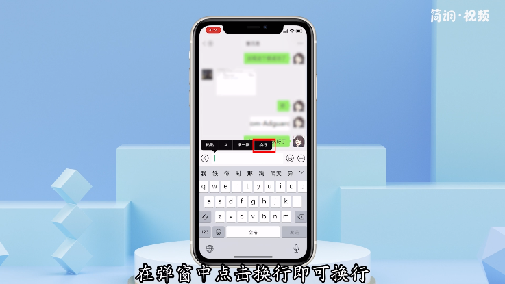 备忘录中,全键盘输入法或九宫格键盘输入法有苹果打字换行键,而长按光标换行在备忘录中无法使用,但在微信qq等其他软件中可以操作。以微信为例。具体操作步骤如下: