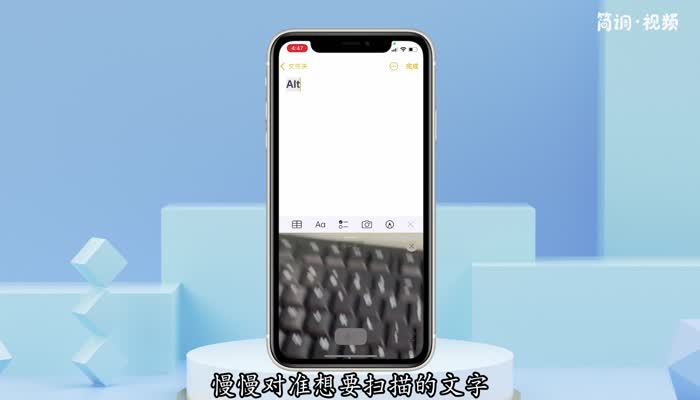 4.点击小窗口中的键盘扫描文本功能图标,慢慢对准你要扫描的文本;