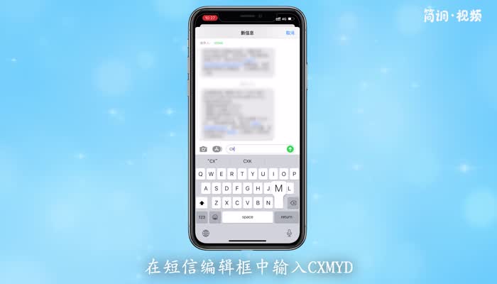 3.确认号码后,在短信编辑框中输入“CXMYD”,然后按右边的发送图标发送;