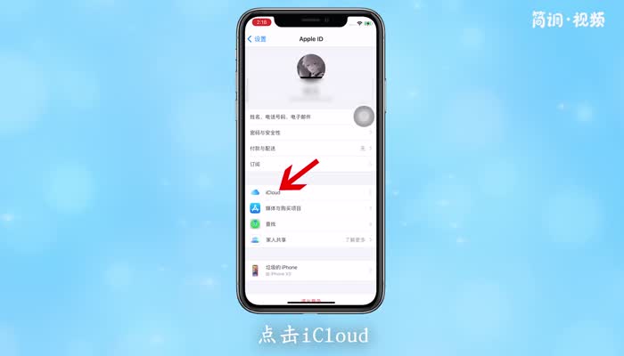 3.进入Apple ID页面后,点击“iCloud”进入iCloud页面;