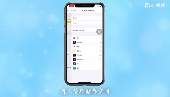 4.进入iCloud页面后,点击“管理存储空间”选项,进入管理存储空间;