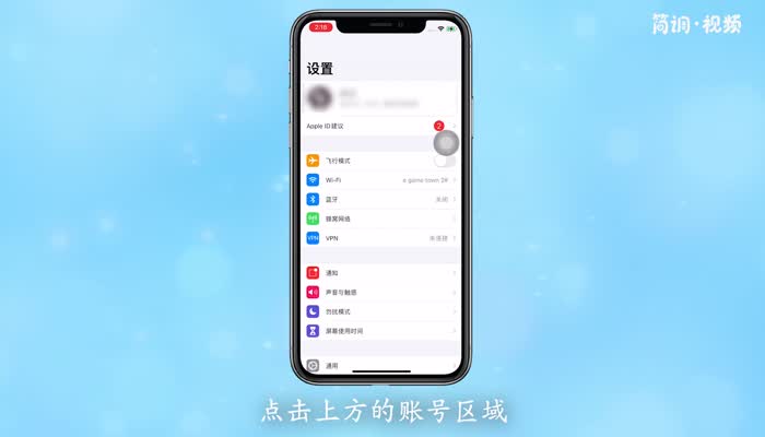 2.进入手机设置页面后,点击上方的账号区,进入Apple ID页面;