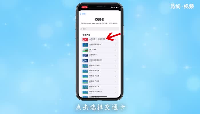 2.在新页面中点击“添加”按钮,然后选择添加卡片。以交通卡为例,点击“交通卡”选项;