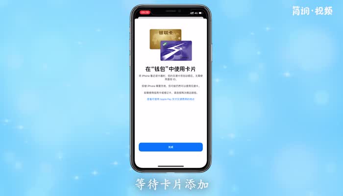 4.输入充值金额,点击右上角的“添加”按钮,等待卡添加完毕,然后点击“完成”按钮。