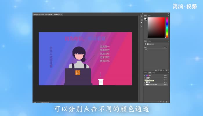 4.在通道界面中,你可以点击不同的颜色通道来参考过多的黑白效果,然后修改色阶值,直到你满意为止。