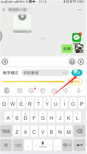 返回微信对话框。在“反向文字模式”对话框中输入的文本方向相反。