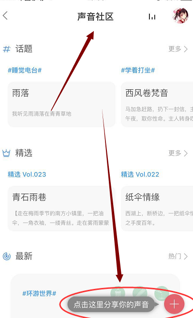 还可以分享自己喜欢的音乐声音。一个红色的数字将显示在社区页面的右下角。单击此处分享声音。