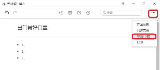 2.进入文档界面,点击[.]在右上角,在弹出的下拉菜单中点击【导出/下载】。