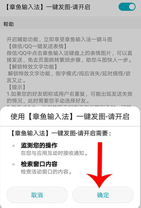 进入解锁状态后,点击章鱼输入法,用按钮打开,然后选择“确定”。