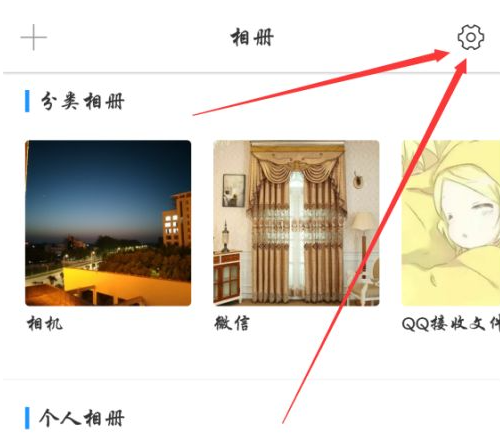 打开相册后,显示你的账号,你的相册等。此时,我们点击右上角的齿轮。