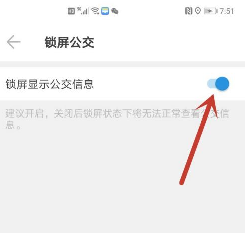 5.然后,打开里面的锁屏显示公交信息按钮,车来了就可以在锁屏上显示公交信息了。