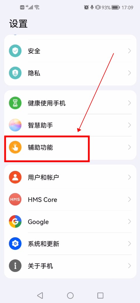 在手机设置中点击“辅助功能”。